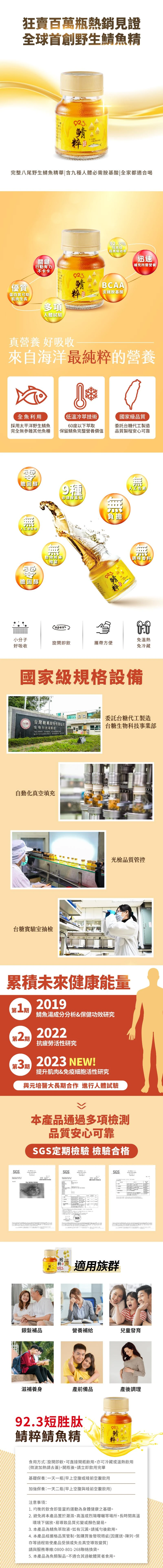 【短胜肽鯖魚精】 採用南方澳野生鯖魚,92.3%短胜肽,調節生理機能,增強體力。